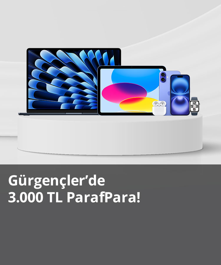 - 1-28 Şubat 2026 tarihleri arasında Gürgençler Apple mağazaları veya www.gurgencler.com.tr’de Paraf POS’undan tek seferde yapılacak 25.000 TL ve üzeri ilk alışverişinize 3000 TL ParafPara verilecektir.