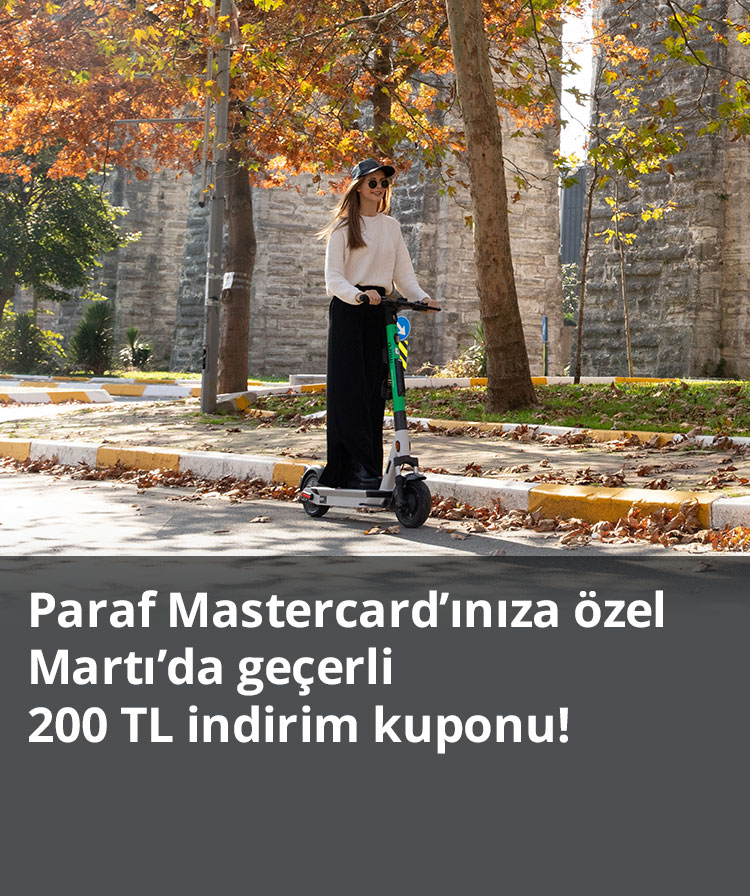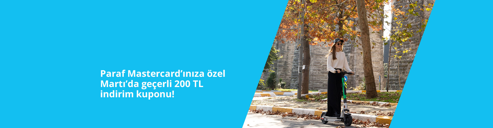 - Kupon, Martı uygulamasında Mastercard ile yapılan tüm Martı Scooter, Martı Mobilet ve Martı Moped sürüşlerinde geçerlidir.