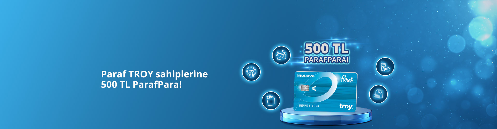 - 1-31 Mart 2026 tarihleri arasında Paraf Troy logolu bireysel kredi kartları ile market, gıda, restoran, yemek, kafe ve giyim sektörlerinde yurt içi tüm banka POS’larından toplamda yapılacak 20.000 TL ve üzeri harcamaya 500 TL Parafpara verilecektir.