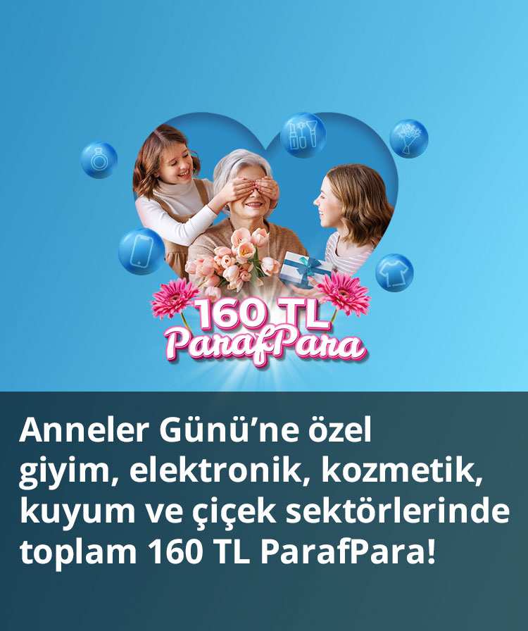 • 1-14 Mayıs 2023 tarihlerinde giyim, elektronik, kozmetik, kuyum ve çiçek sektörlerinde , yurt içinde  yapılacak her ikinci 400 TL ve üzeri harcamaya 40 TL, toplamda 160 TL ParafPara verilecektir.