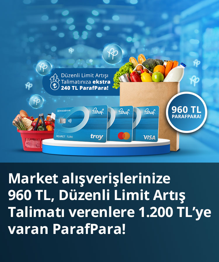 Market alışverişlerinize 960 TL, Düzenli Limit Artış Talimatı verenlere 1.200 TL’ye varan Parafpara