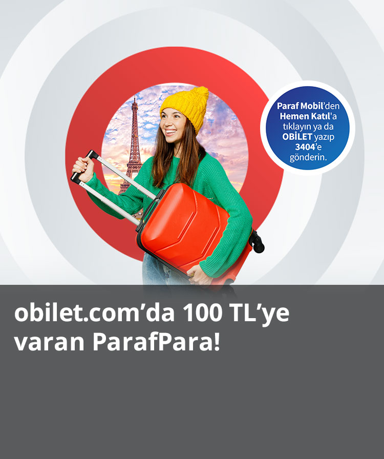 - Paraf ile 1 Ocak 2026 – 28 Şubat 2026 tarihleri arasında Obilet web sitesi veya Obilet mobil uygulamasından, tek seferde yapacağınız 750 TL ve 999 TL arası uçak/seçili firmalardan otobüs bileti satın alımlarınız ile otel ve araç kiralama rezervasyon işlemlerinizde 75 TL ParafPara, 1.000 TL ve üzeri uçak/seçili firmalardan otobüs bileti alımlarınız ile otel ve araç kiralama rezervasyon işlemlerinizde ise 100 TL ParafPara.