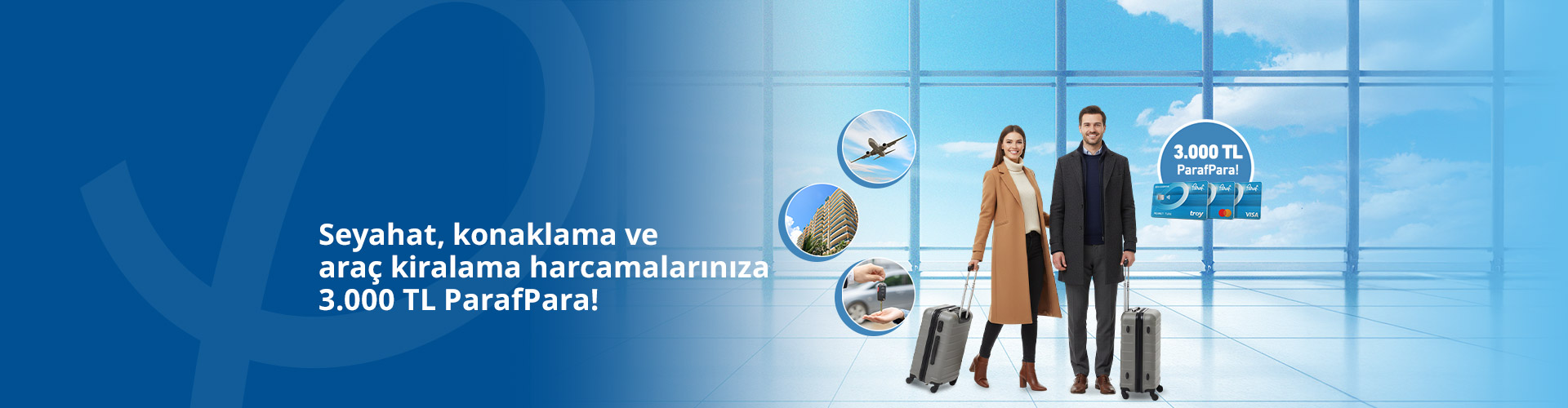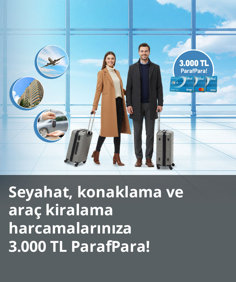 - 1-31 Mart 2026 tarihlerinde yurt içi seyahat, konaklama ve araç kiralama sektörlerinde tek seferde yapılacak 10.000 TL ile 29.999 TL arasındaki harcamaya 500 TL, 30.000 TL ile 99.999 TL arasındaki harcamaya 1.250 TL, 100.000 TL ve üzerine 3.000 TL ParafPara verilecektir.