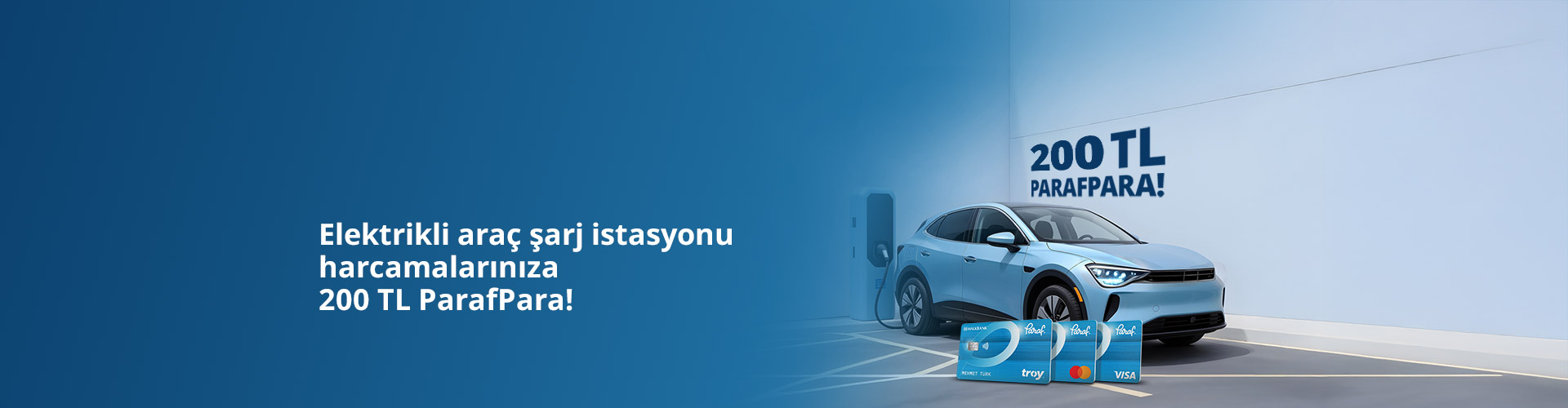 - 1-31 Aralık 2025 tarihleri arasında yurt içi elektrikli araç şarj istasyonlarında tek seferde yapılacak 200 TL ve üzeri harcamaya 50 TL, toplam 200 TL ParafPara verilecektir.