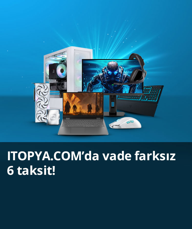 - 6-30 Nisan 2026 tarihleri arasında Itopya mağazaları ve www.itopya.com’dan yapılacak taksitli alışverişinize vade farksız 6 taksit imkanı sunulacaktır.