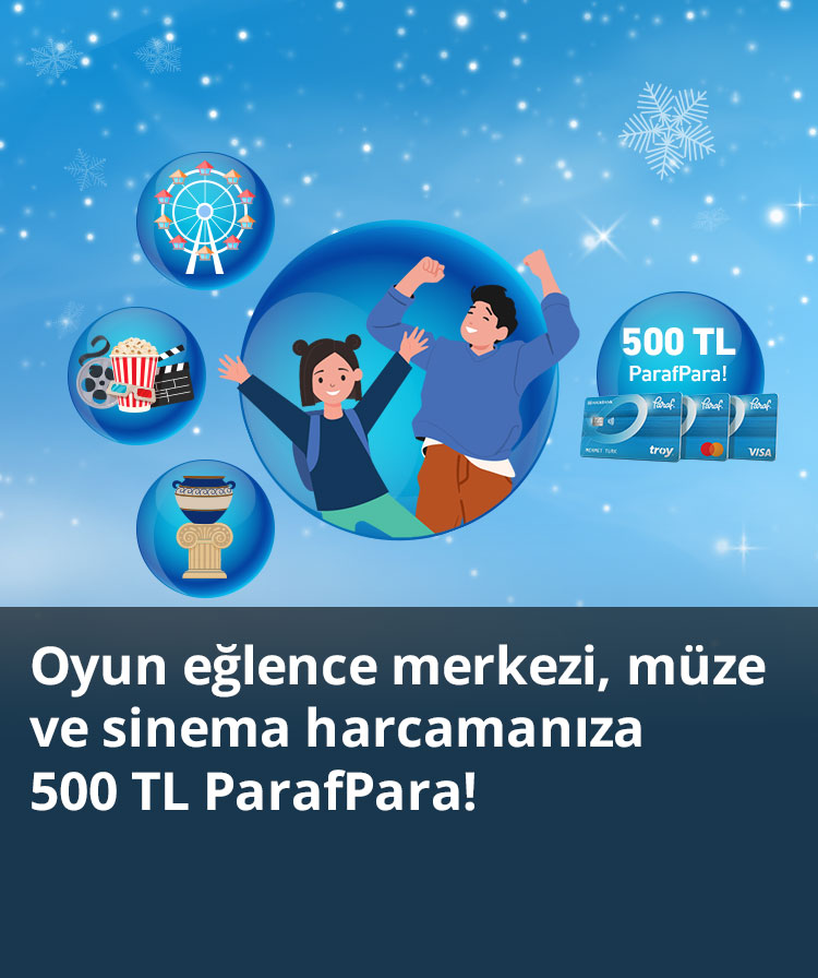 - 16 Ocak - 1 Şubat 2026 tarihlerinde yurt içinde tek seferde yapılacak 500 TL ve üzeri oyun eğlence yerleri, müze ve sinema harcamalarına %20, toplamda 500 TL ParafPara verilecektir.