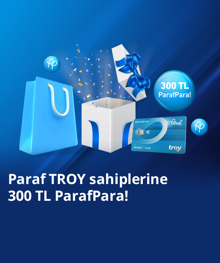 - 1-30 Kasım 2025 tarihleri arasında Paraf Troy logolu bireysel kredi kartları ile yurt içi tüm banka POS’larından tek seferde yapılacak 5.000 TL ve üzeri her harcamaya 100 TL, toplamda 300 TL Parafpara verilecektir.