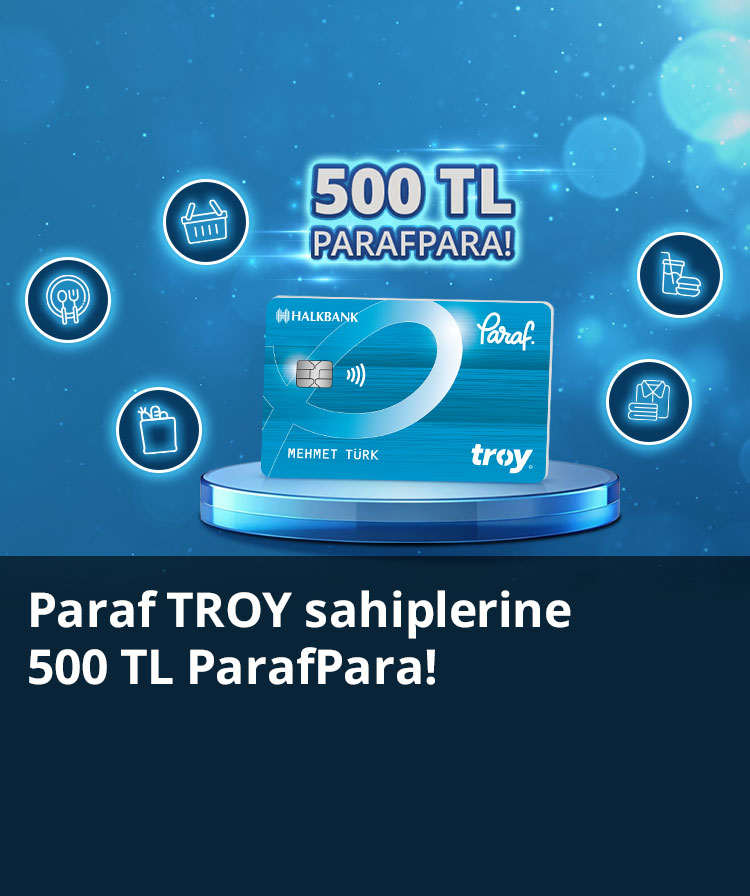- Troy logosu bulunmayan diğer bireysel kredi kartları, ParafGenc, Parafree, Paraf Debit, Business Kartlar, Ticari Kartlar, Halkcardlar kampanyaya dahil değildir.