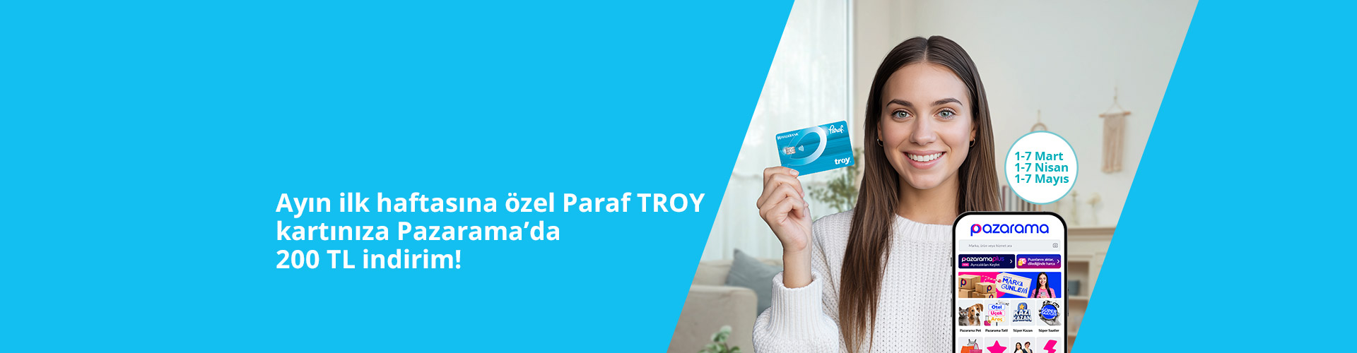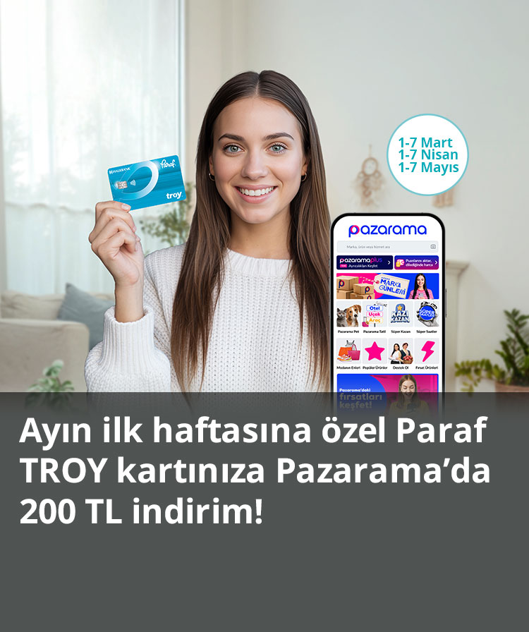 Ayın ilk haftasına özel Paraf TROY kartla Pazarama’da tek seferde yapılacak 1.000 TL ve üzeri alışverişe 200 TL indirim!
