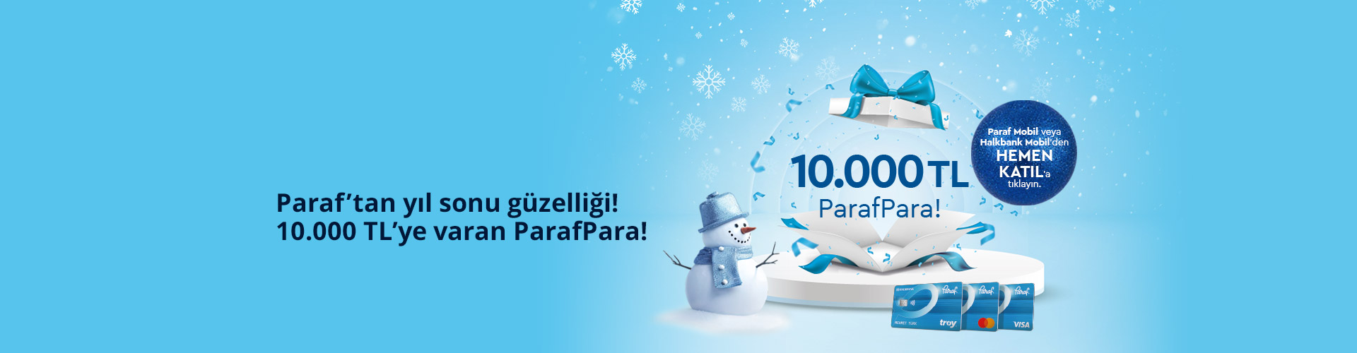 - Seçili e-ticaret firmalarında geçerli bu 3 kampanya ile toplamda 10.000 TL ParafPara kazanılabilecektir. Kampanyalara katılmak için harcama yapmadan önce Halkbank Mobil veya Paraf Mobil’den “Hemen Katıl” butonunun ayrı ayrı her bir kampanya için tıklanması gerekmektedir.
