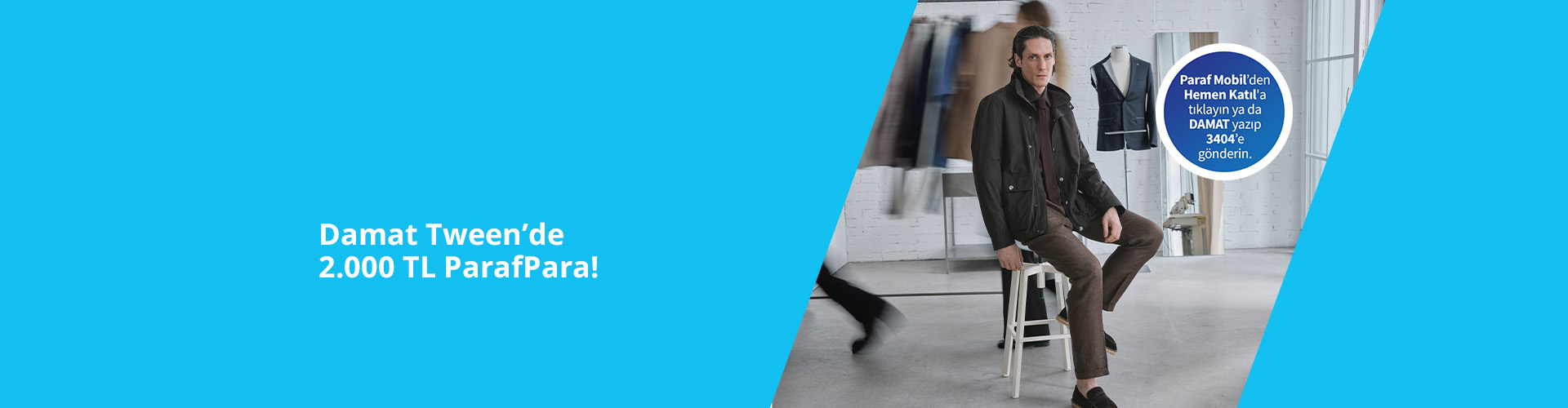 - 1-30 Nisan 2026 tarihleri arasında Damat Tween’de Paraf POS’undan tek seferde yapılacak 20.000 TL ve üzeri ilk alışverişe 2.000 TL ParafPara verilecektir.