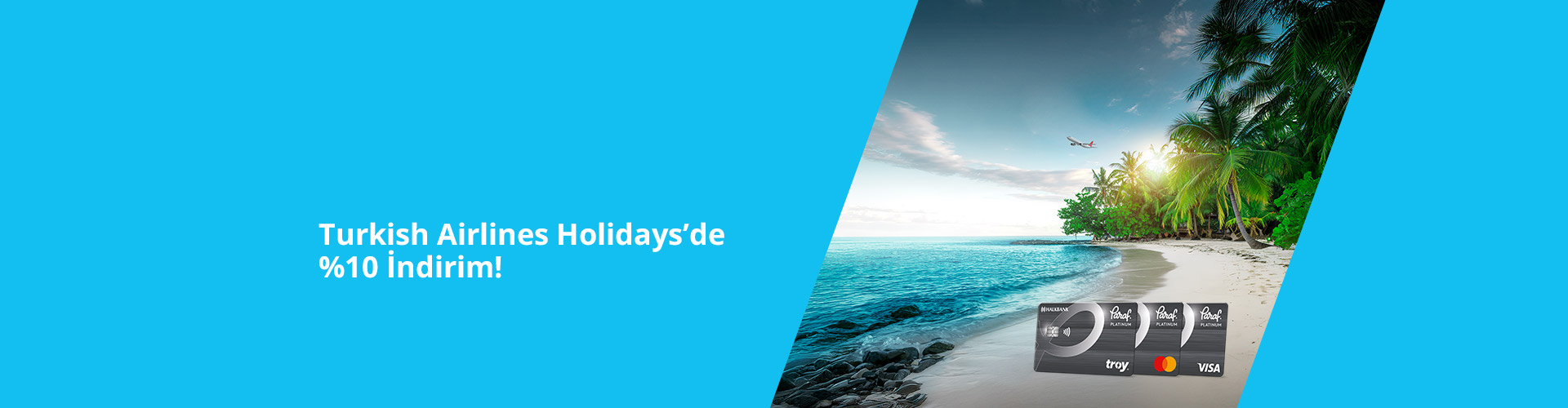 - Turkish Airlines Holidays'de indirim ödülü başka bir indirim ödülü ile birleştirilemeyecek olup, kampanyanın farklı bir kampanya ile çakışması durumunda indirim tutarı daha büyük olan ödül karta yansıtılacaktır.