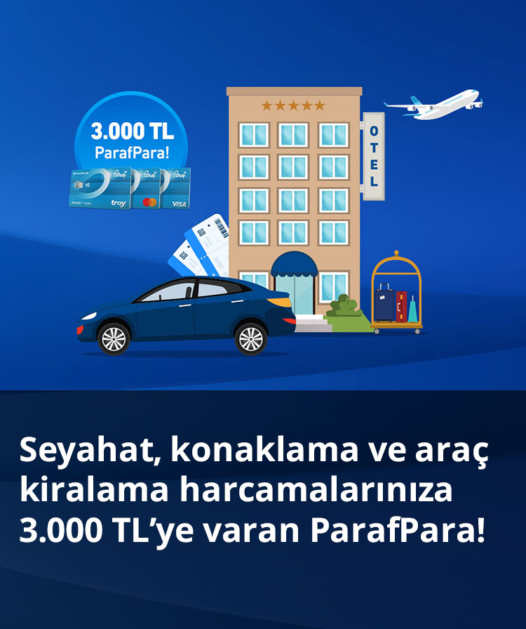 - 1-30 Nisan 2026 tarihlerinde yurt içi seyahat, konaklama ve araç kiralama sektörlerinde tek seferde yapılacak 10.000 TL ile 29.999 TL arasındaki harcamaya 700 TL, 30.000 TL ile 99.999 TL arasındaki harcamaya 1.500 TL, 100.000 TL ve üzerine 3.000 TL ParafPara verilecektir.